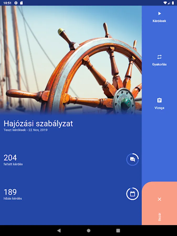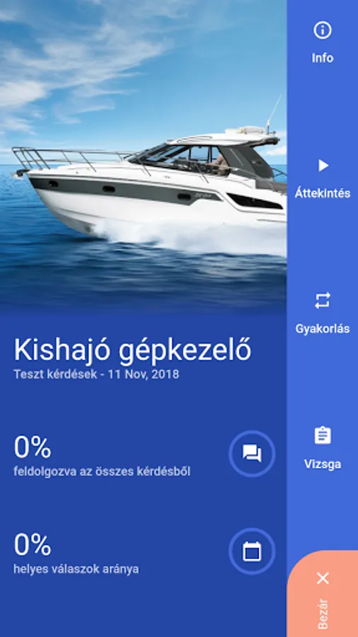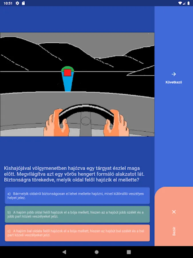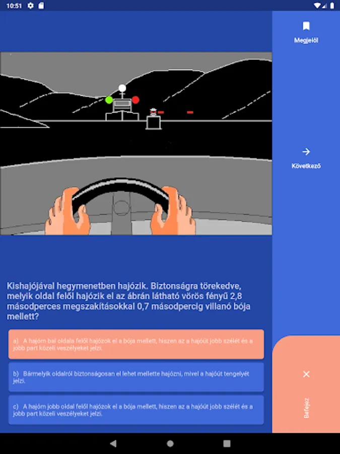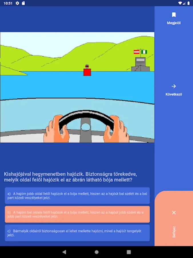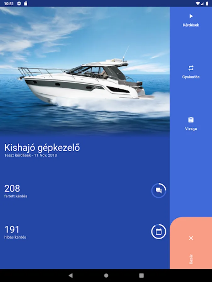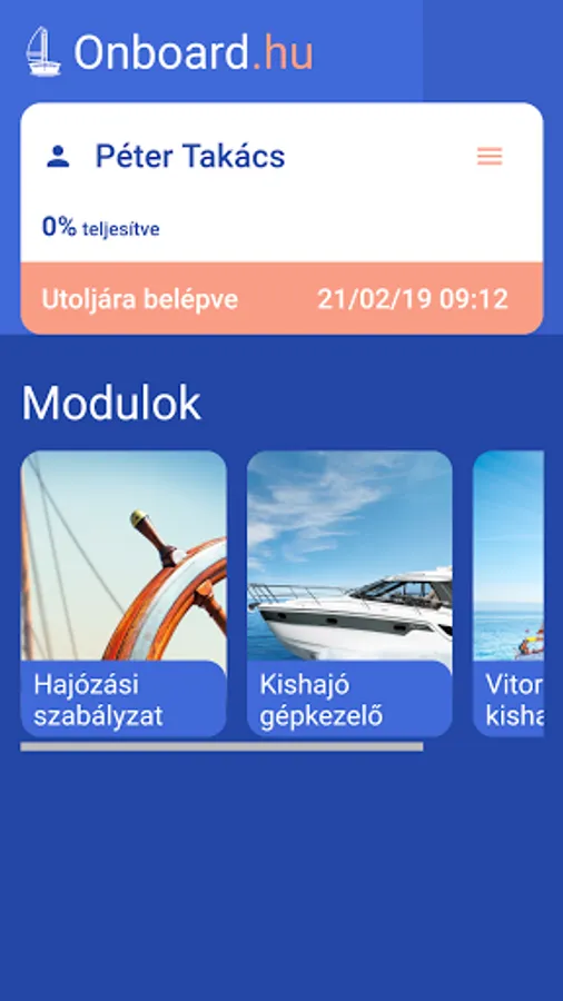 The Onboard application is an innovative system for preparing for a theoretical test related to navigation. The test is based on the official maritime authority exam questions available to the ITM, which will facilitate learning and passing the subsequent theoretical test. The current version contains thousands of test questions and related help and explanations related to the Rules of the Sea, small boats and small sailing boats. In student mode, it is possible to review the questions according to topics, to process the help and explanation belonging to them. In practice mode, the system helps you learn the right answers, all in an adaptive way. In exam mode, an exam simulation can be performed, at the end of which a detailed evaluation will help you prepare. Details: onboard.hu