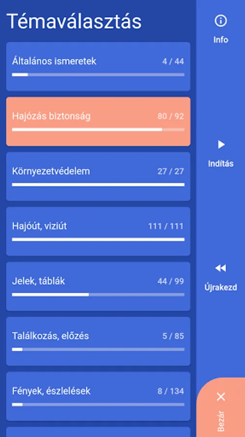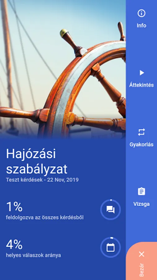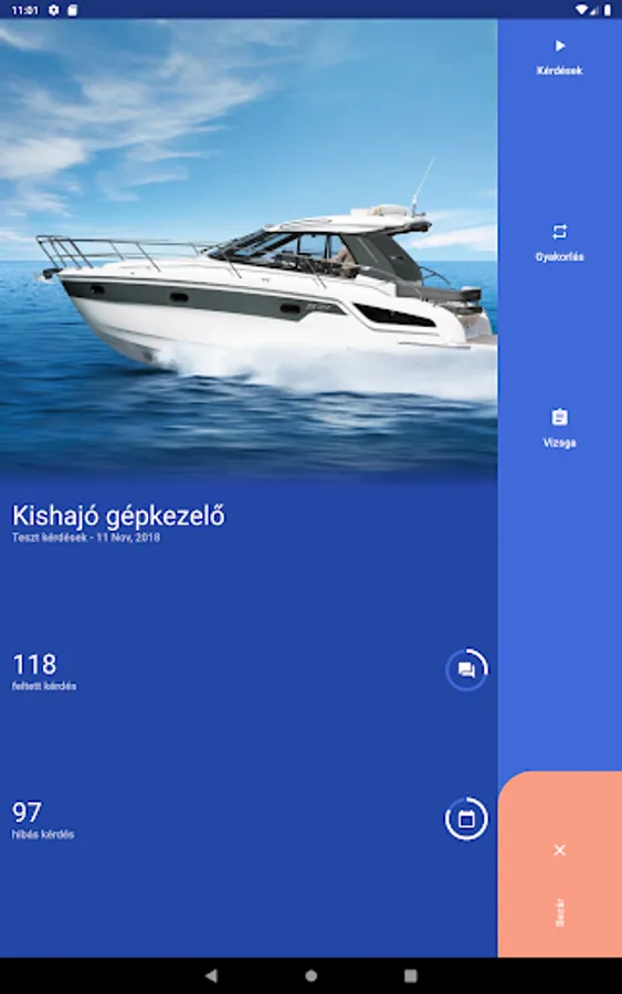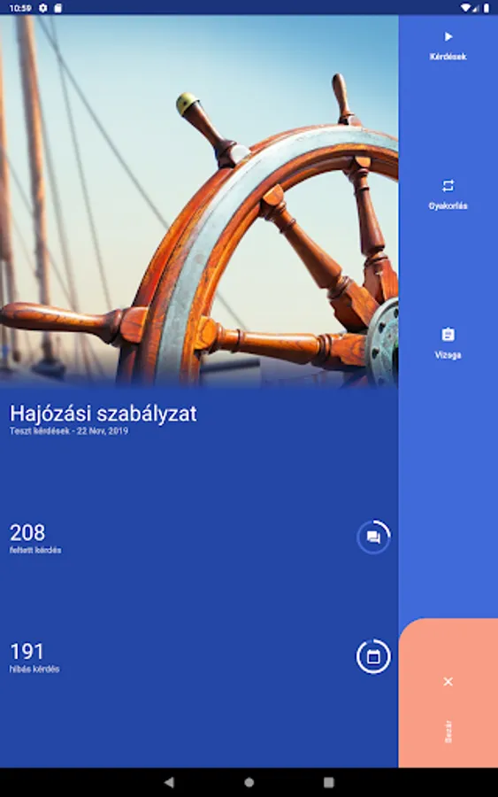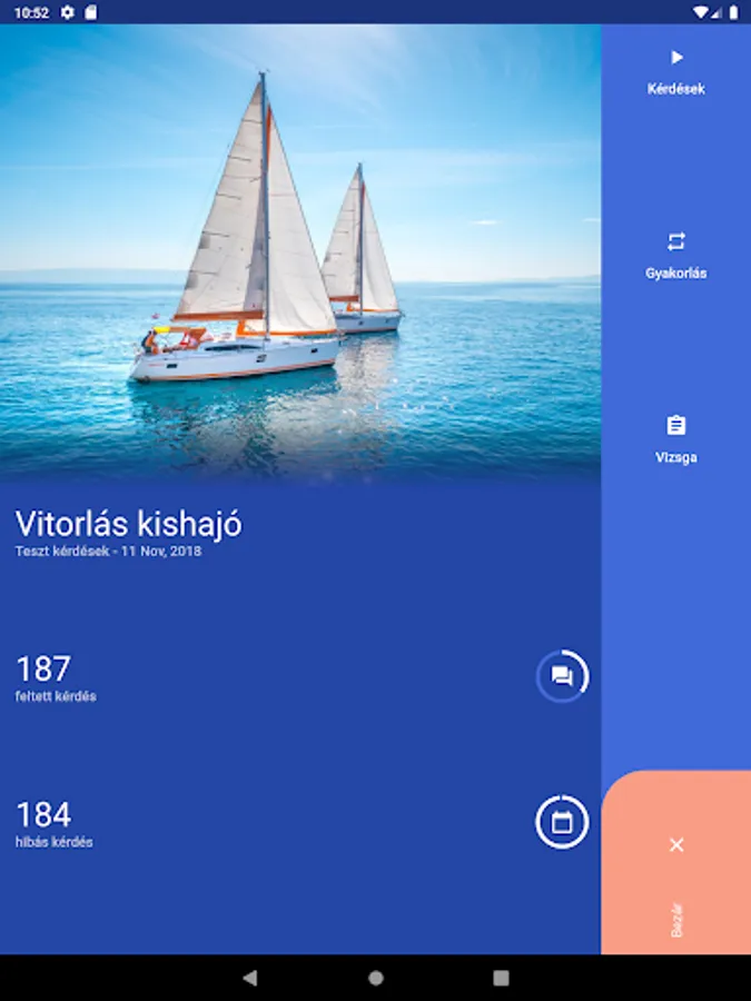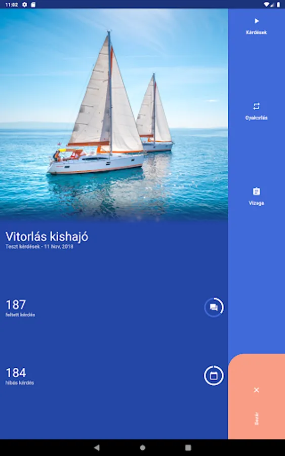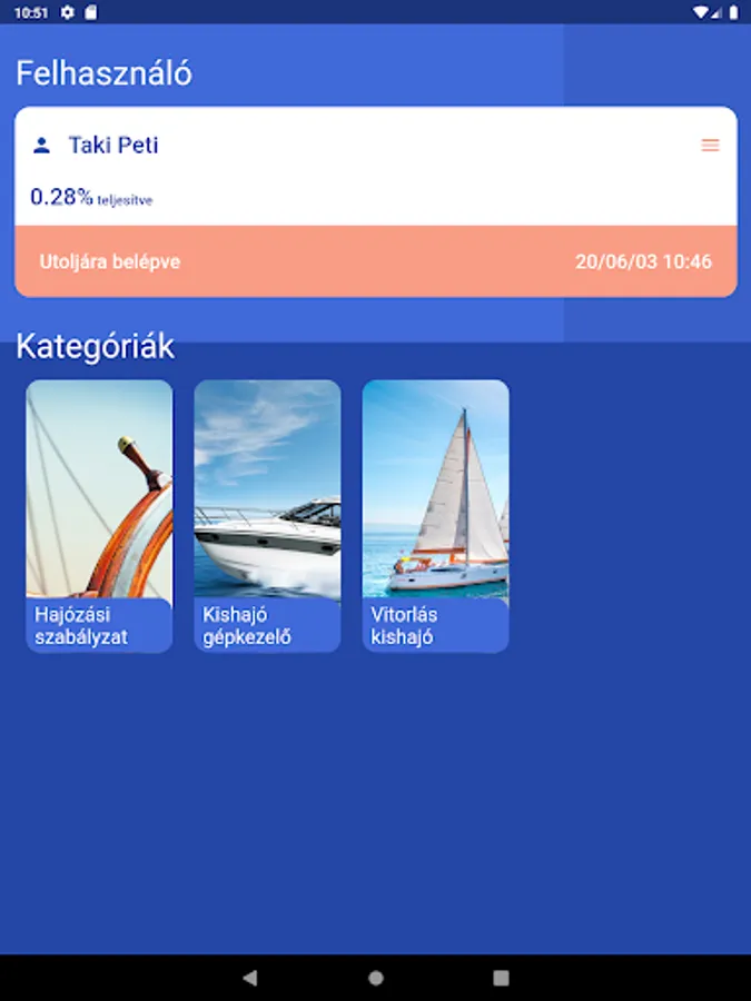 The Onboard application is an innovative system for preparing for a theoretical test related to navigation. The test is based on the official maritime authority exam questions available to the ITM, which will facilitate learning and passing the subsequent theoretical test. The current version contains thousands of test questions and related help and explanations related to the Rules of the Sea, small boats and small sailing boats. In student mode, it is possible to review the questions according to topics, to process the help and explanation belonging to them. In practice mode, the system helps you learn the right answers, all in an adaptive way. In exam mode, an exam simulation can be performed, at the end of which a detailed evaluation will help you prepare. Details: onboard.hu