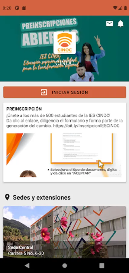 The mobile application of the CINOC Higher Education Institution will allow applicants to view the careers offered by the institution, in the same way that students will be able to view their grades, their class schedule, interact through virtual classrooms and receive notifications.