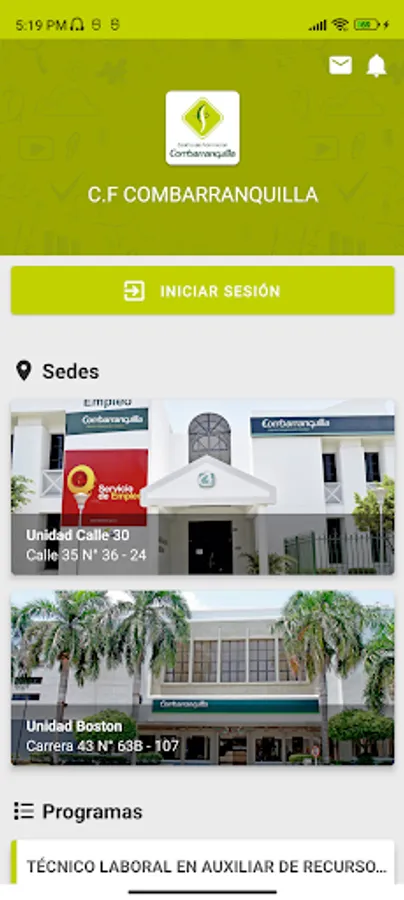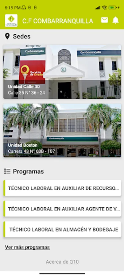 The Combarranquilla mobile application will allow applicants to view the careers offered by the institution, in the same way students will be able to view their notes, their class schedule, interact through virtual classrooms and receive notifications.