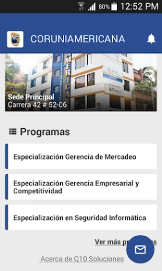 The Corporación Universitaria Americana CORUNIAMERICANA mobile application will allow applicants to view the careers offered by the institution, in the same way students will be able to view their notes, their class schedule, interact through virtual classrooms and receive notifications.