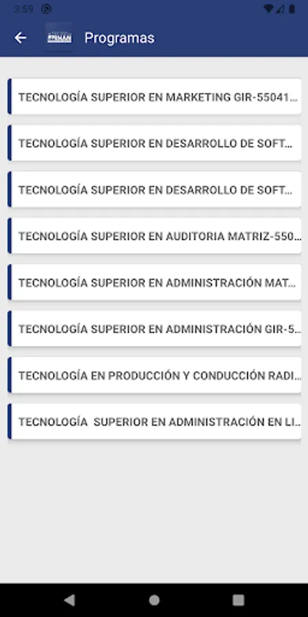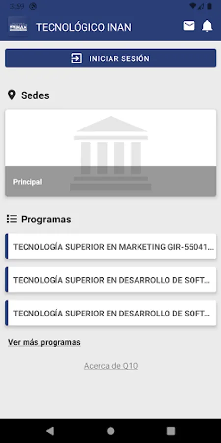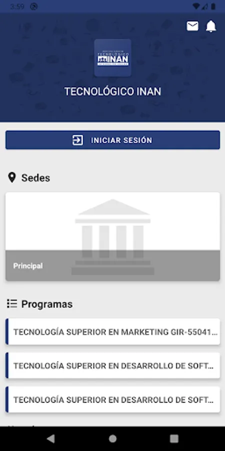 The TECNOLÓGICO INAN mobile application will allow applicants to view the careers offered by the institution, in the same way students will be able to view their grades, their class schedule, interact through virtual classrooms and receive notifications.