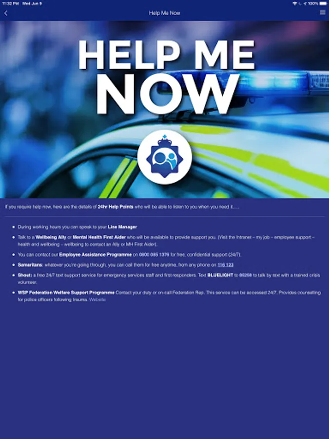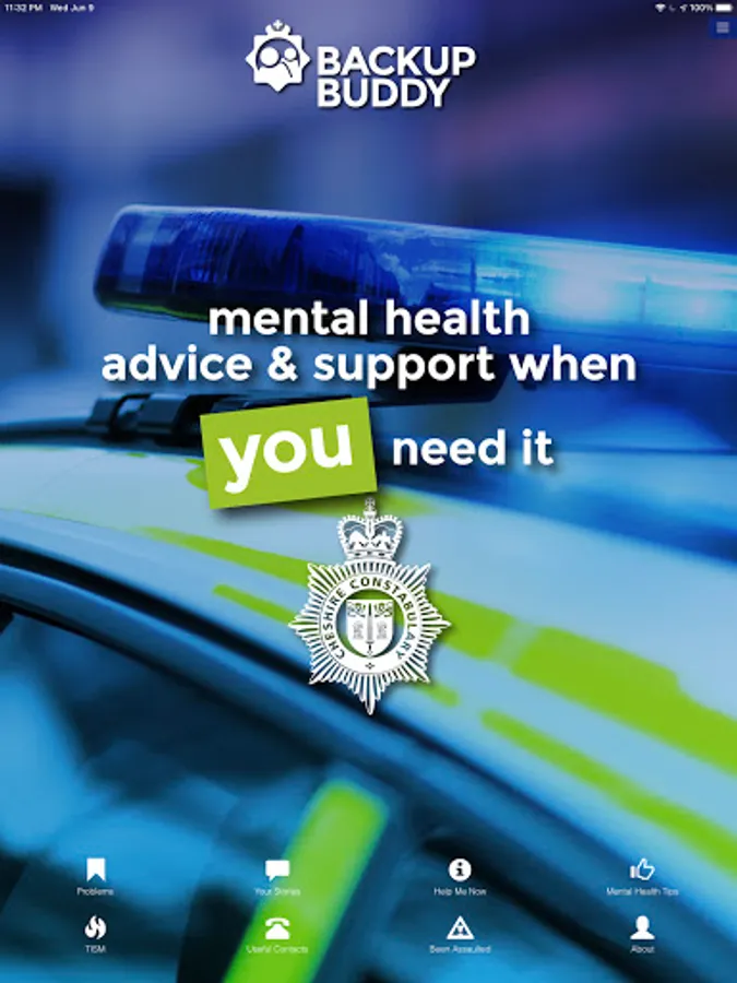The Backup Buddy Police Support app is for police officers and staff, designed to help with mental health issues.