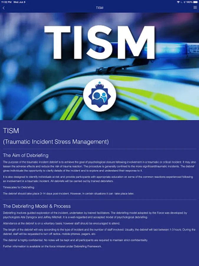 The App covers a range of problems faced by officers and staff in the Police service, such as anxiety, stress, PTSD (Post Traumatic Stress Disorder), depression, eating disorders, self-harm and more. It gives practical advice and support on how officers can maintain good mental health, spot warning signs for themselves and others, plus advice on how to get help for themselves and colleagues.