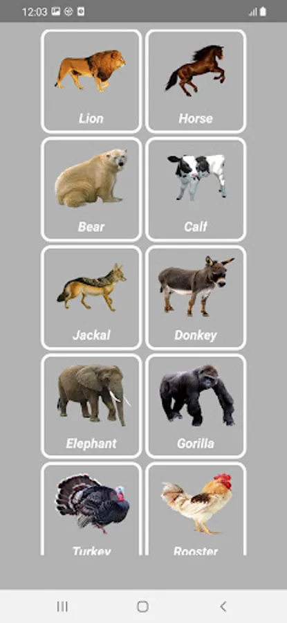 Do you want to know the animals. Then apply this animal sounds for you. Click on the animals listed on the screen. Listen to the sound. So what's the sound you will learn which animals. Animal sounds very easy to use application. One screen can have access to all the animals. We love animals. Then download this application. Listen to the sound.