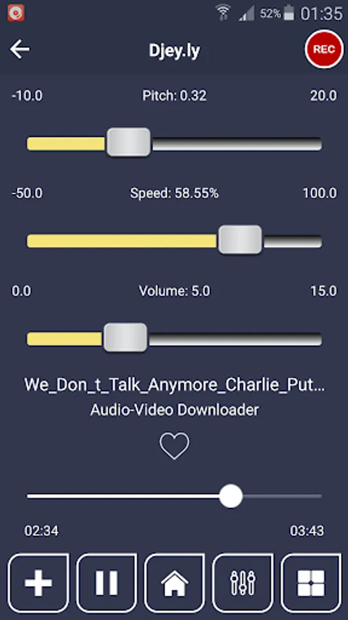 Easily change Pitch, Speed and Volume while playing music with Djey.ly.