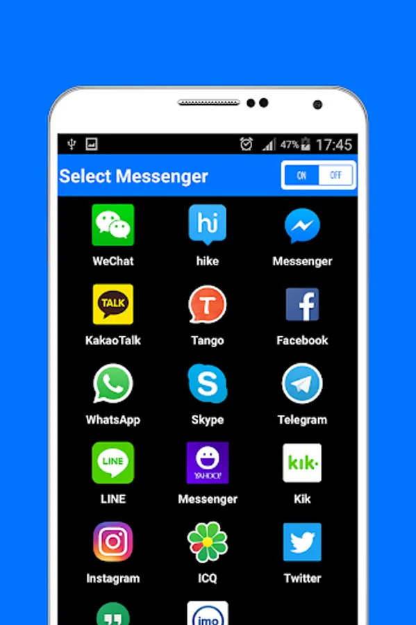 Access all messenger applications with one click. We have created a shortcut for messaging applications for you. We have collected all the messaging applications in one application. And with the icon that can be fixed on the screen. All the messaging applications are now just one click away. You can move the icon display to leave the service turned on. For faster access. You can access all the messaging applications with a single click with the icon fixed on the top left corner of your handset.
