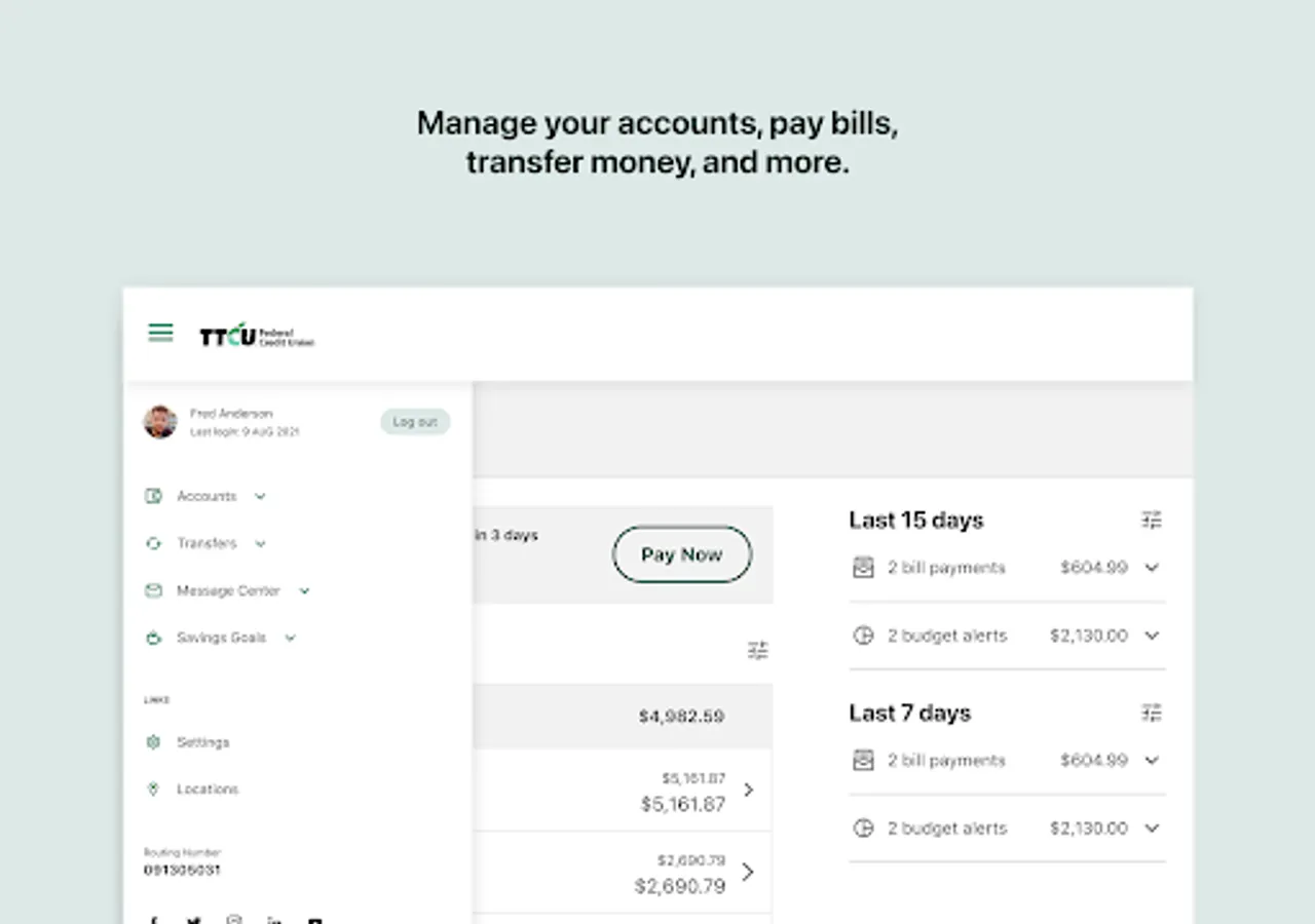 • Transfer funds between your TTCU accounts or with other financial institutions