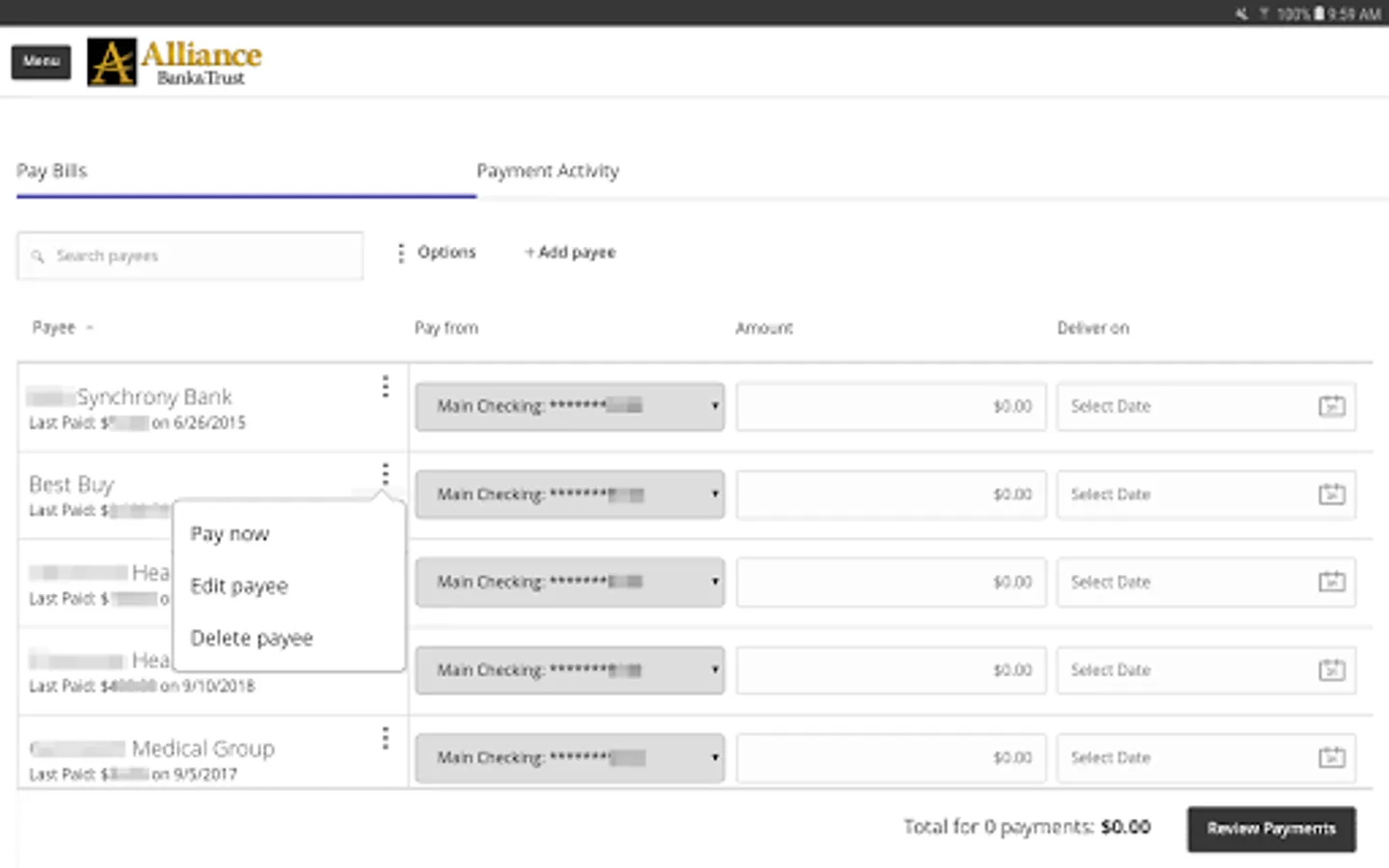 With Alliance Bank's mobile app you can check balances, view transactions, transfer funds, deposit checks, pay bills, and communicate securely with Bank personnel. You can do all this wherever, whenever, at your own convenience. It’s fast, free* and available to all of our Online Banking users.