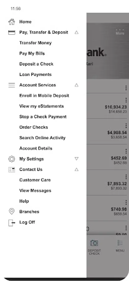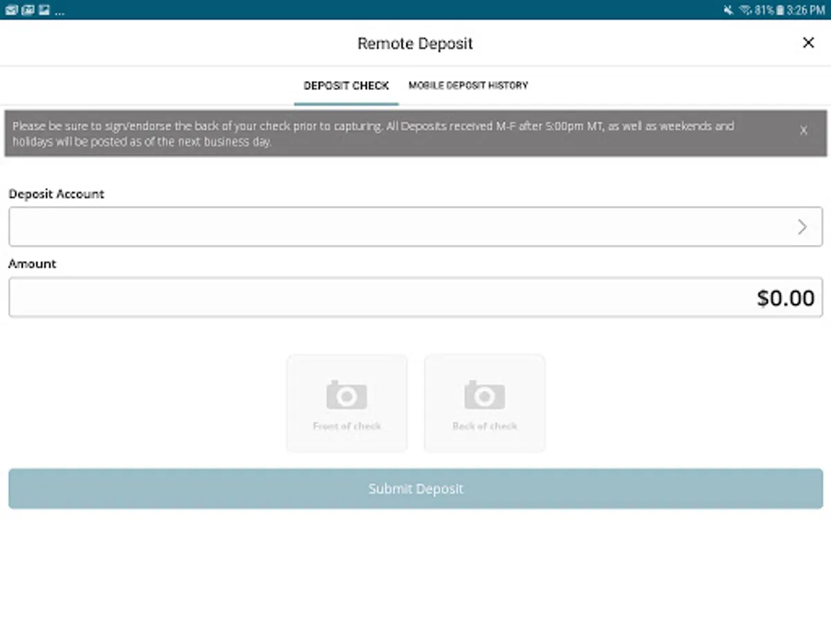 • View transaction history and check images, display online activity, and complete internal funds transfers