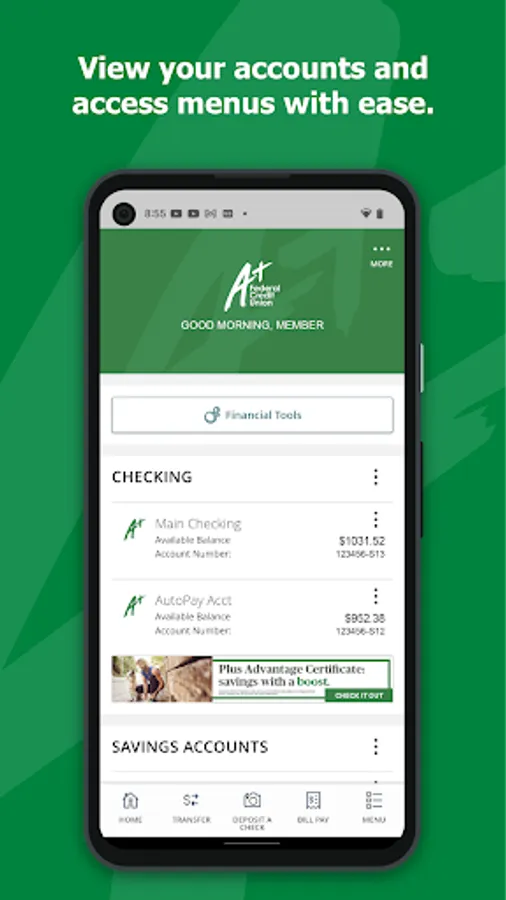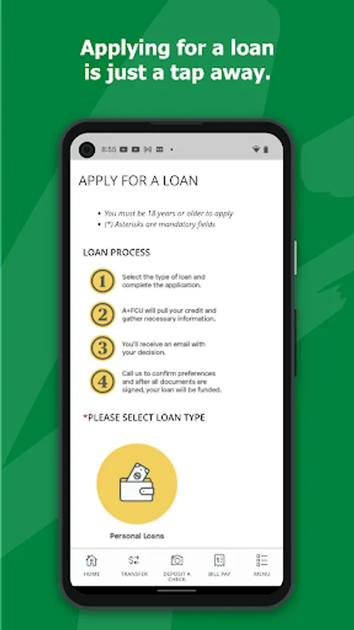 Manage your finances on the go for FREE* with A+ Mobile. You can perform financial transactions with A+FCU anywhere, right from your Android device.