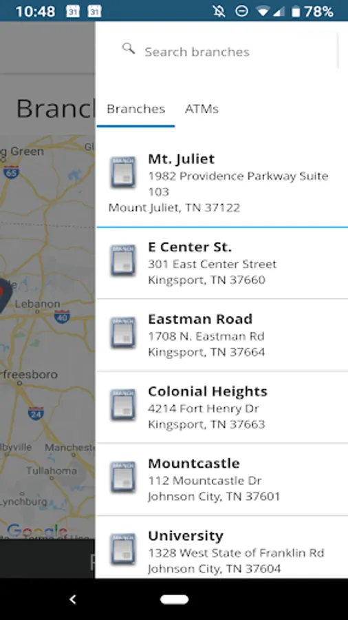 - Access branch hours and location information