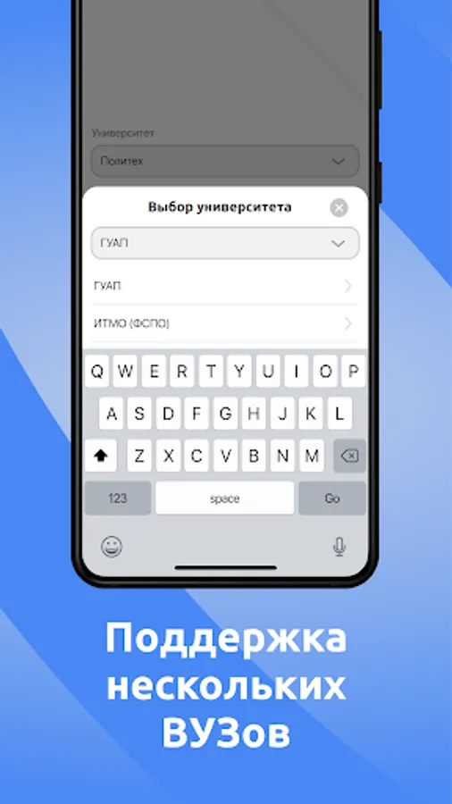The application works with the SUAI and FSF ITMO, and the support of the Polytechnic University is also being tested. Anyone can join our team and add support for their educational institution with a java module for the server.