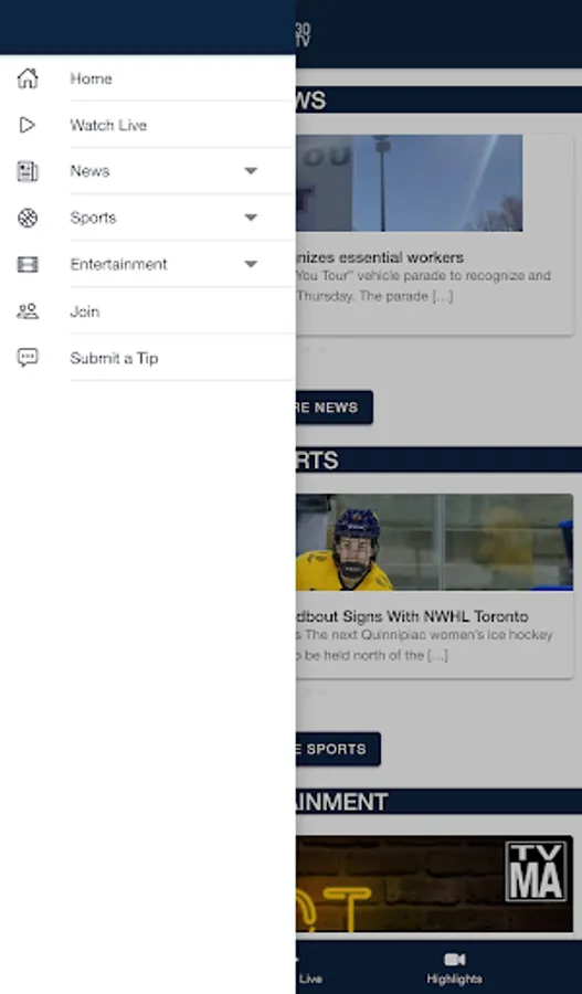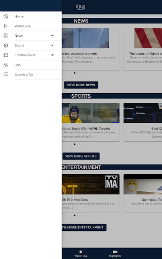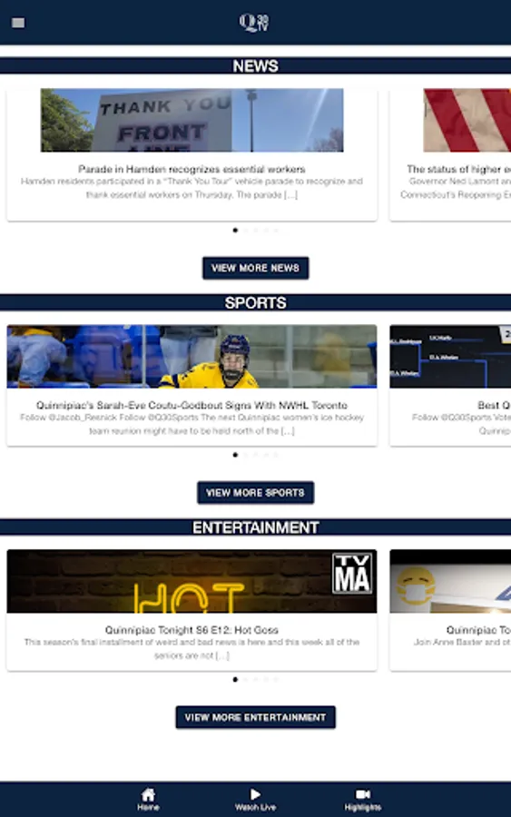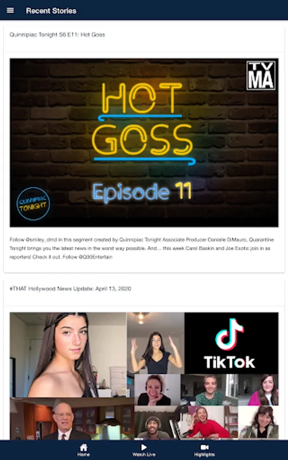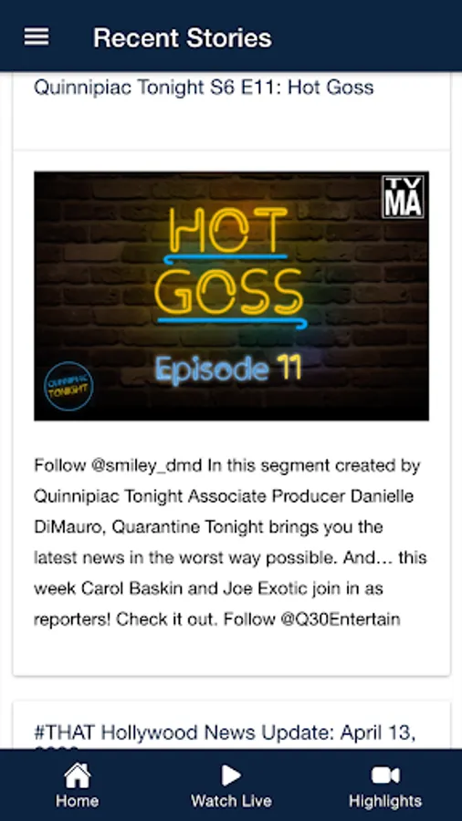 Entertainment - Read recent entertainment stories, watch #THAT and Quinnipiac Tonight, and view our twitter entertainment feed all in within the app.