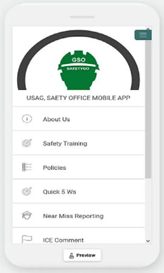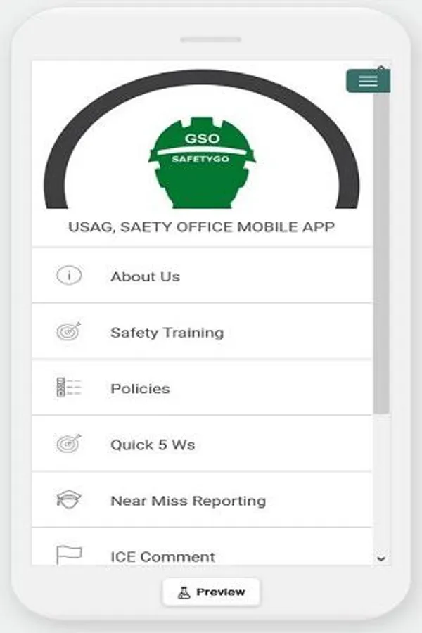 The USAG SafetyGo App is the public access app for the USAG, Fort Riley Safety Office. The app is designed to provide public access information to the General Public about the USAG, Fort Riley Safety Office including a public calendar of events, safety information and providing customer feedback for safety services. The app uses Google Forms to enroll participates in safety courses, a public access calendar for safety events and a variety of public links to key safety personnel, services and information pertaining to safety and occupational health.