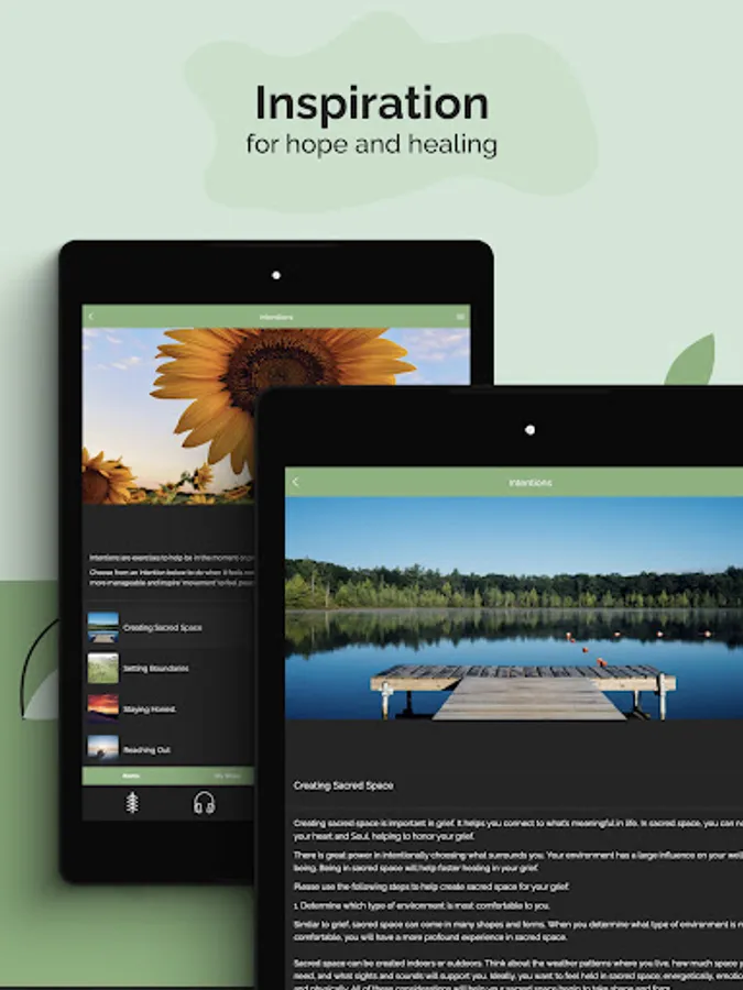Tips and gentle suggestions for ways to manage difficult experiences. If needed, Intentions help with providing a focus.