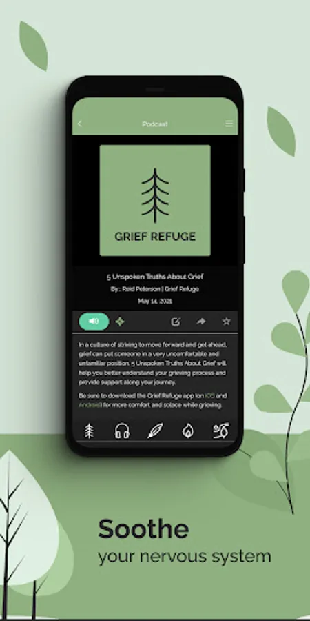 Grief Refuge helps you feel soothed and supported through grief, healing, and living your life from this point forward. It provides daily content to help you cope with death related loss and process grief-filled thoughts and emotions. Made with several features to help soothe and support you throughout your mourning and grieving process, Grief Refuge is available every day to help you get through this difficult time.