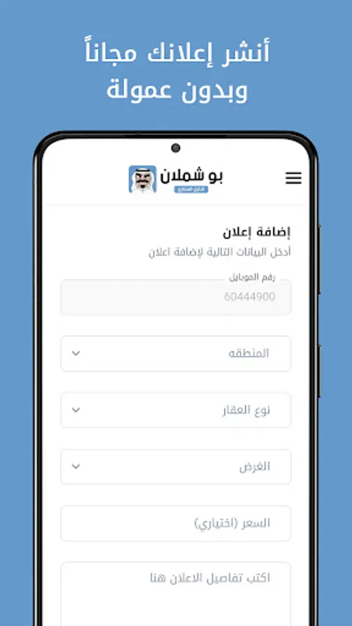 - اضافة اعلانك مع تفاصيل العقار مجانًا