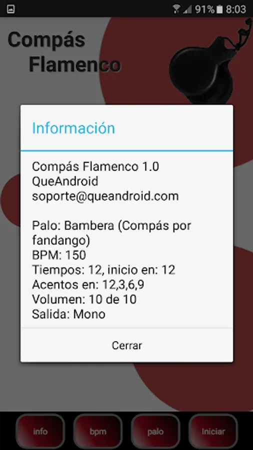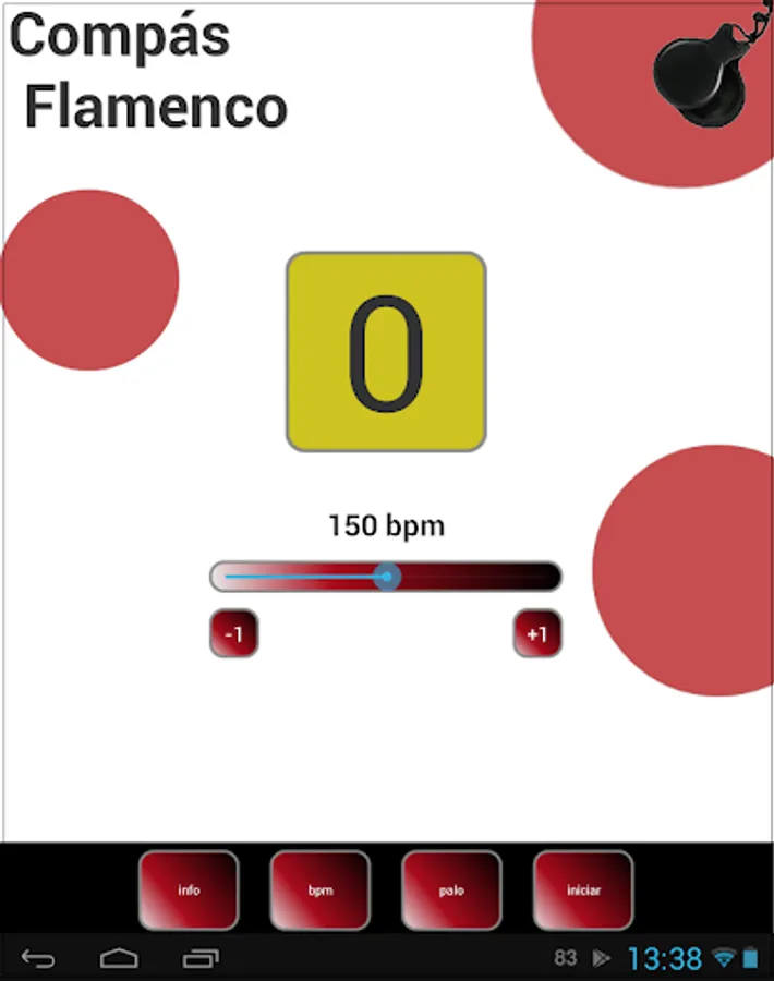 It incorporates compas: 2/4, 3/4, 4/4 and flamenco compas (12 time) and It shows the accents in red color