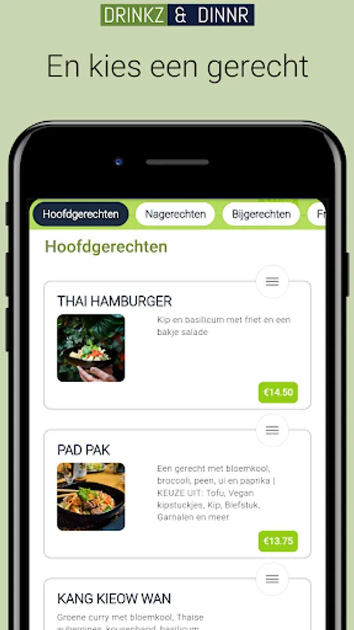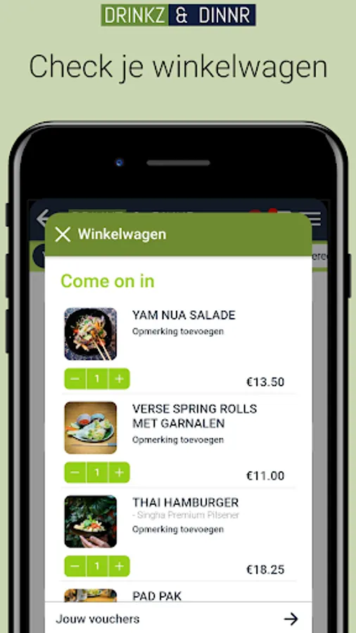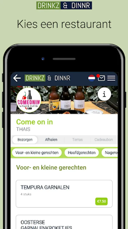 Met Drinkz & Dinnr bestel je eenvoudig bij jouw favoriete horeca. Of het nu gaat om afhalen, bezorgen of live bestellen... Voor jou als besteller is de app uiteraard helemaal gratis. En dankzij de lage tarieven is de app bovendien zerer horeca-vriendelijk!