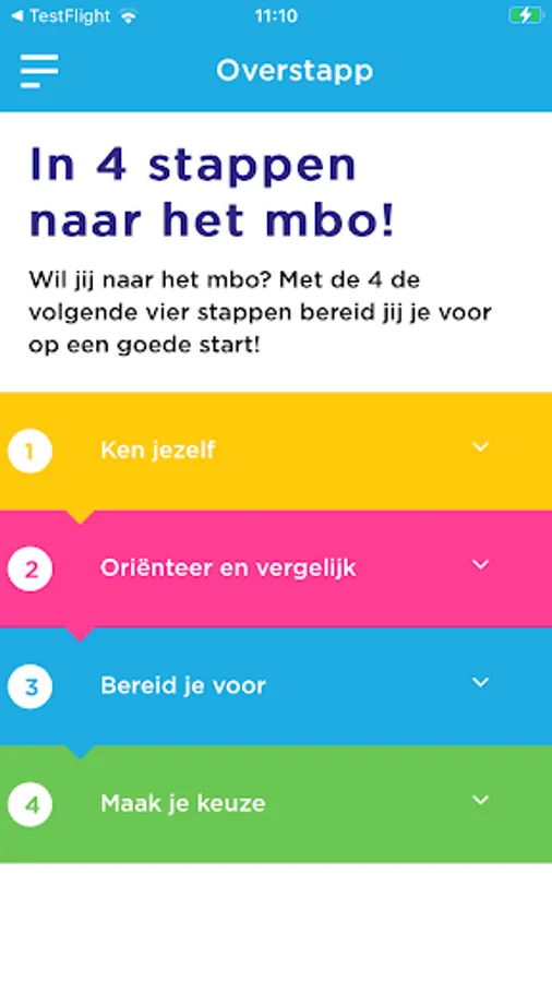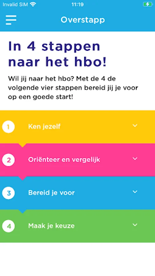 The Overstapp. The app for switching to MBO and HBO in the Haaglanden region. Are you going to switch to MBO or HBO, then the Overstapp is really something for you.