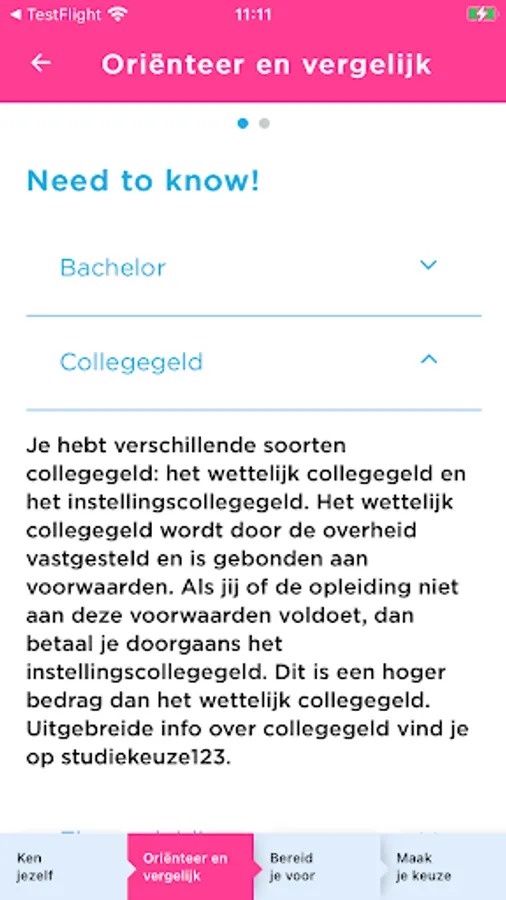 The Switching App provides extensive information, tests and important references, we help you transfer to the best educational institution. Whether you are in VMBO, MBO or HBO, the information is conveniently combined in the app for everyone.