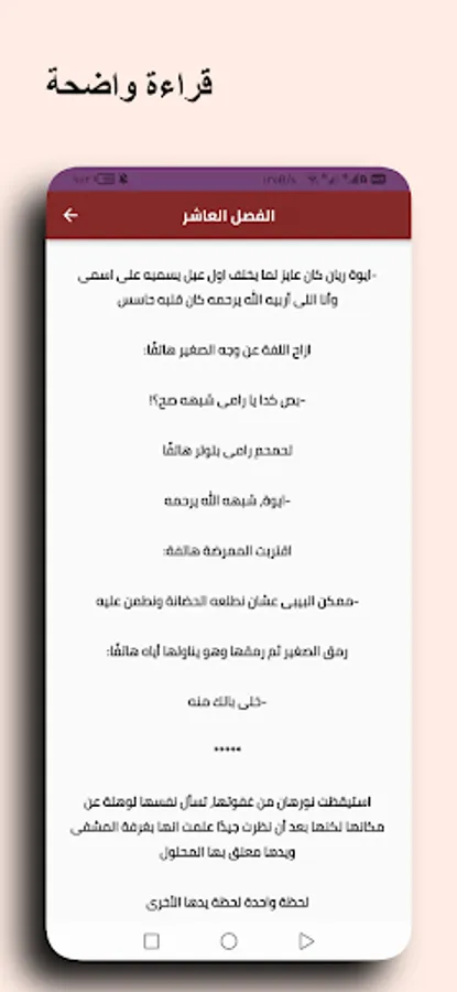 This application is characterized by being easy to browse and read. You can also share the application with friends. Easy and comfortable reading and writing. Easy navigation between the chapters of the narrator.