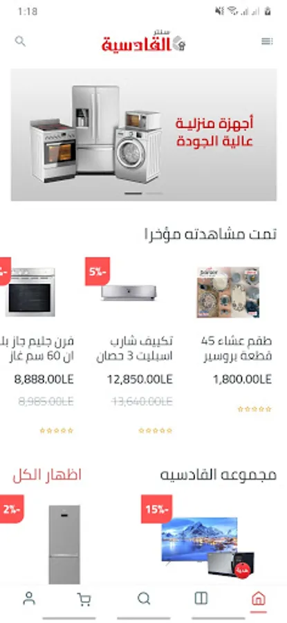 Al-Qadisiyah has everything your home needs of electrical appliances (refrigerator, washing machine, freezer, stove, vacuum cleaner, kitchen machine, mixer, fan, microwave, fryer with oil and without oil, air conditioning, personal care tools) and household appliances all your home kitchen needs (Chinese sets, Arcopal, Arcopyrex, tea sets, gateaux, melamine, granite pot sets, ceramic, Tefal, stainless) and all the utensils used in the kitchen