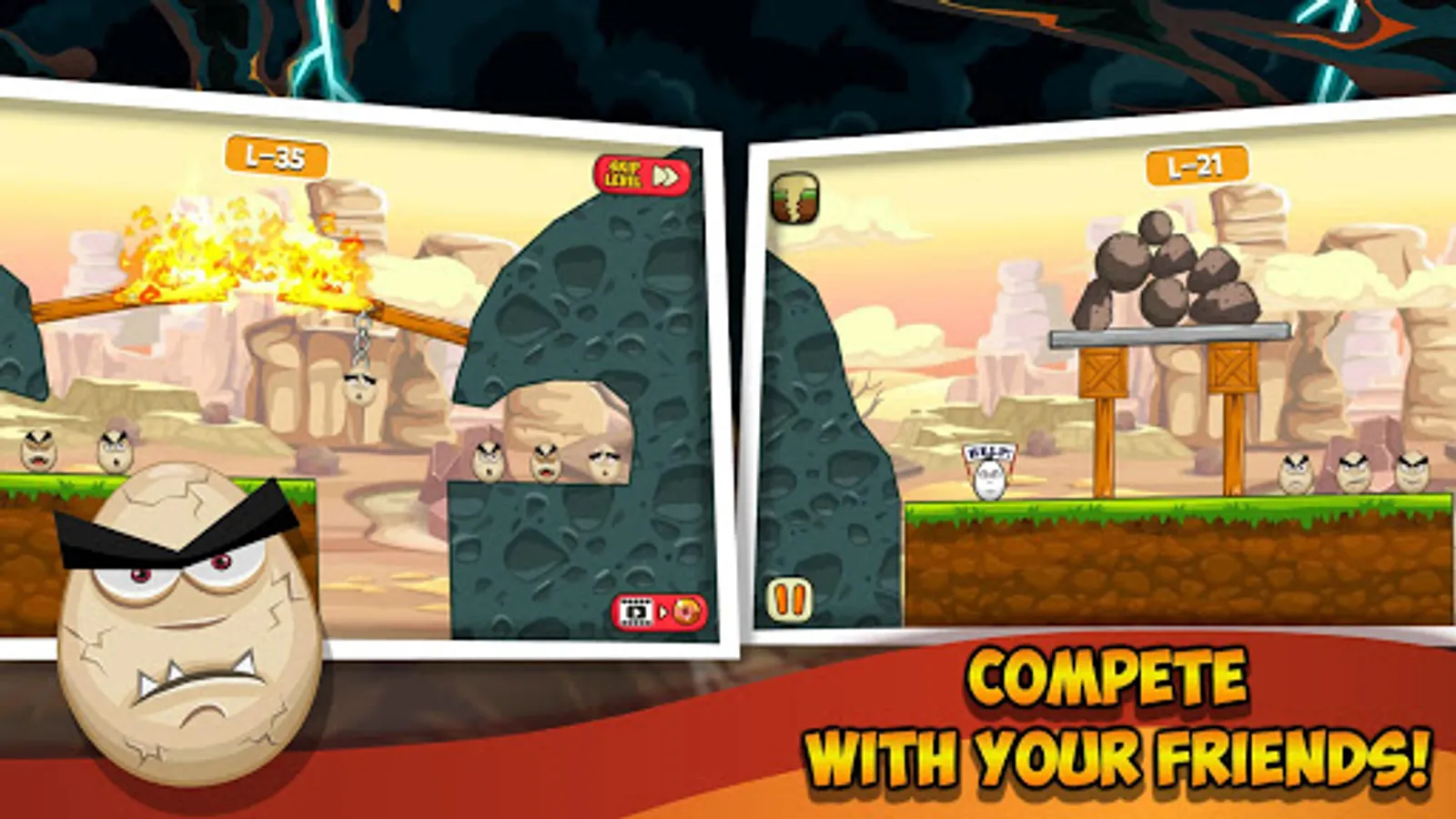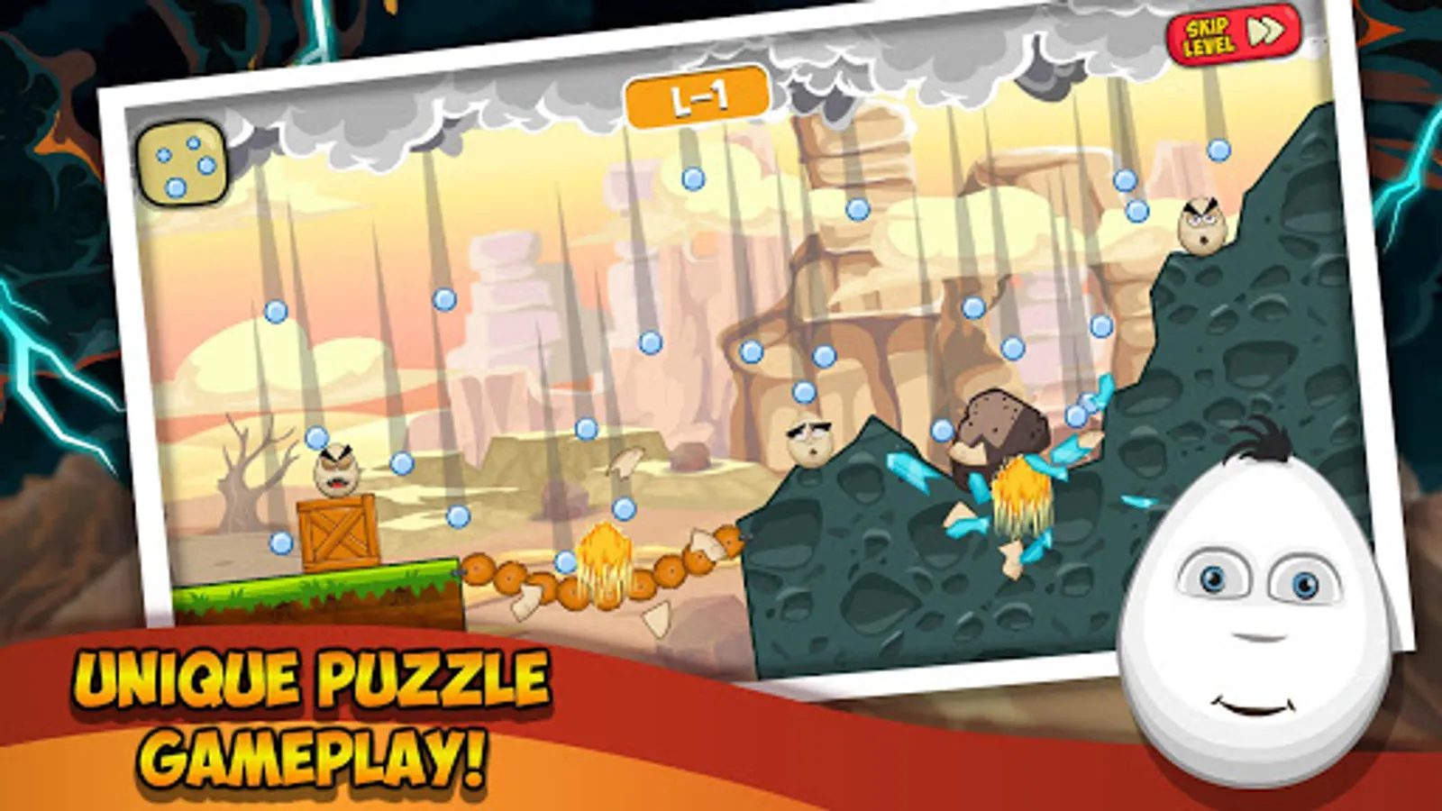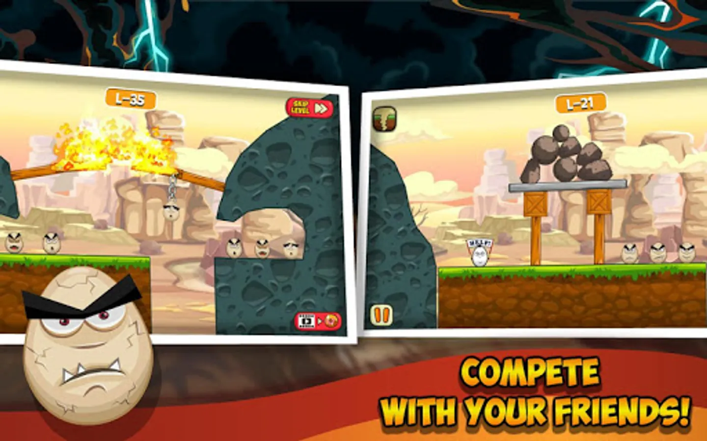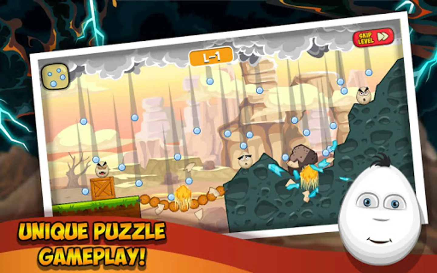The game is an addictive puzzle game on Android, where your task is to destroy the evil eggs on each level. In this game, you can get help from various disasters, natural disasters and other objects that will help destroy the eggs.