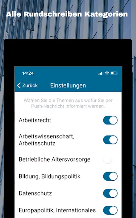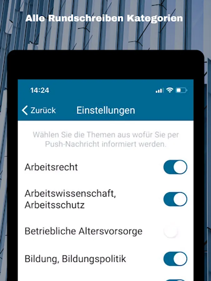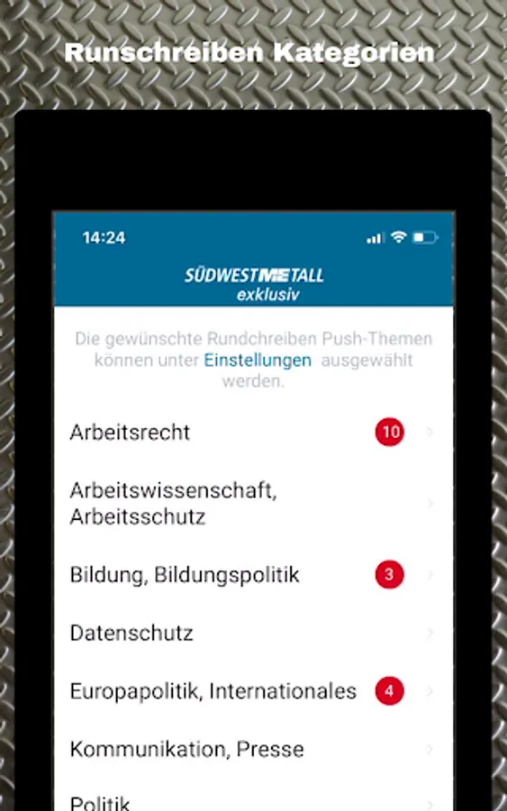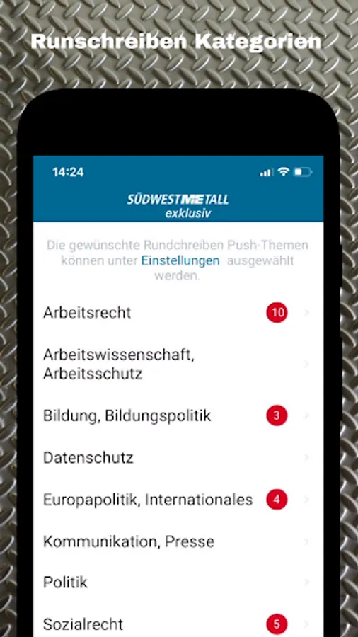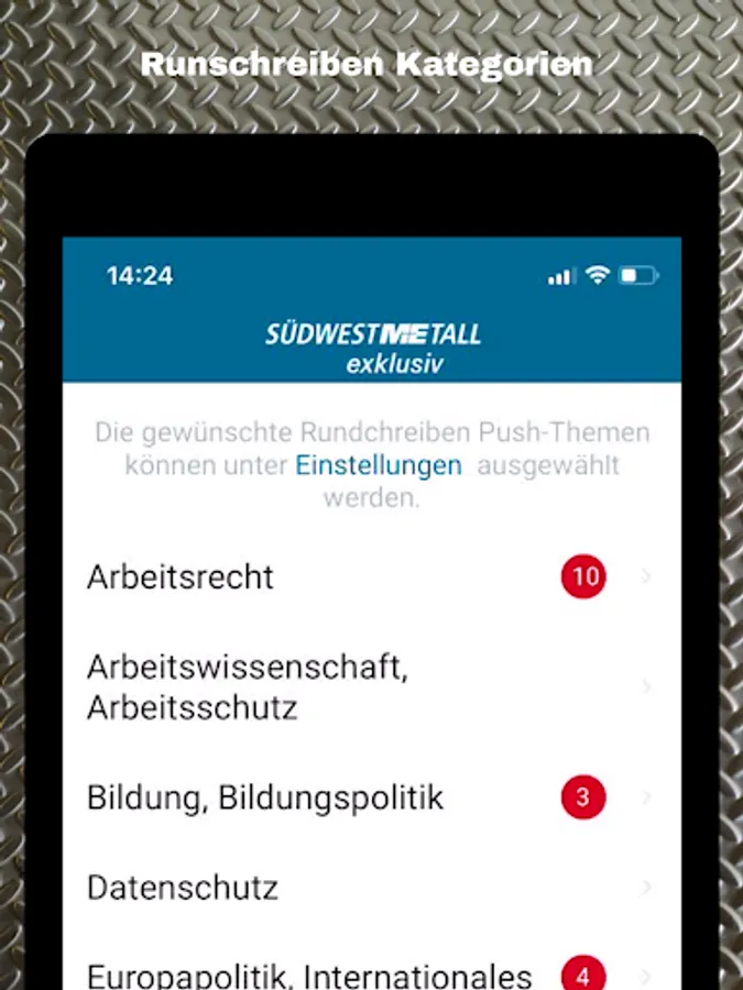 Always up to date as an employer: the app gives members direct access to the association’s circulars. In addition, news from the world of labor and social law, education, securing skilled workers, collective bargaining policy and other social and economic policy topics also keep users up to date via push notifications.