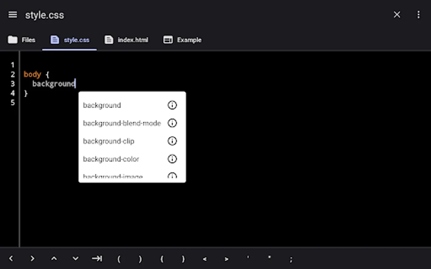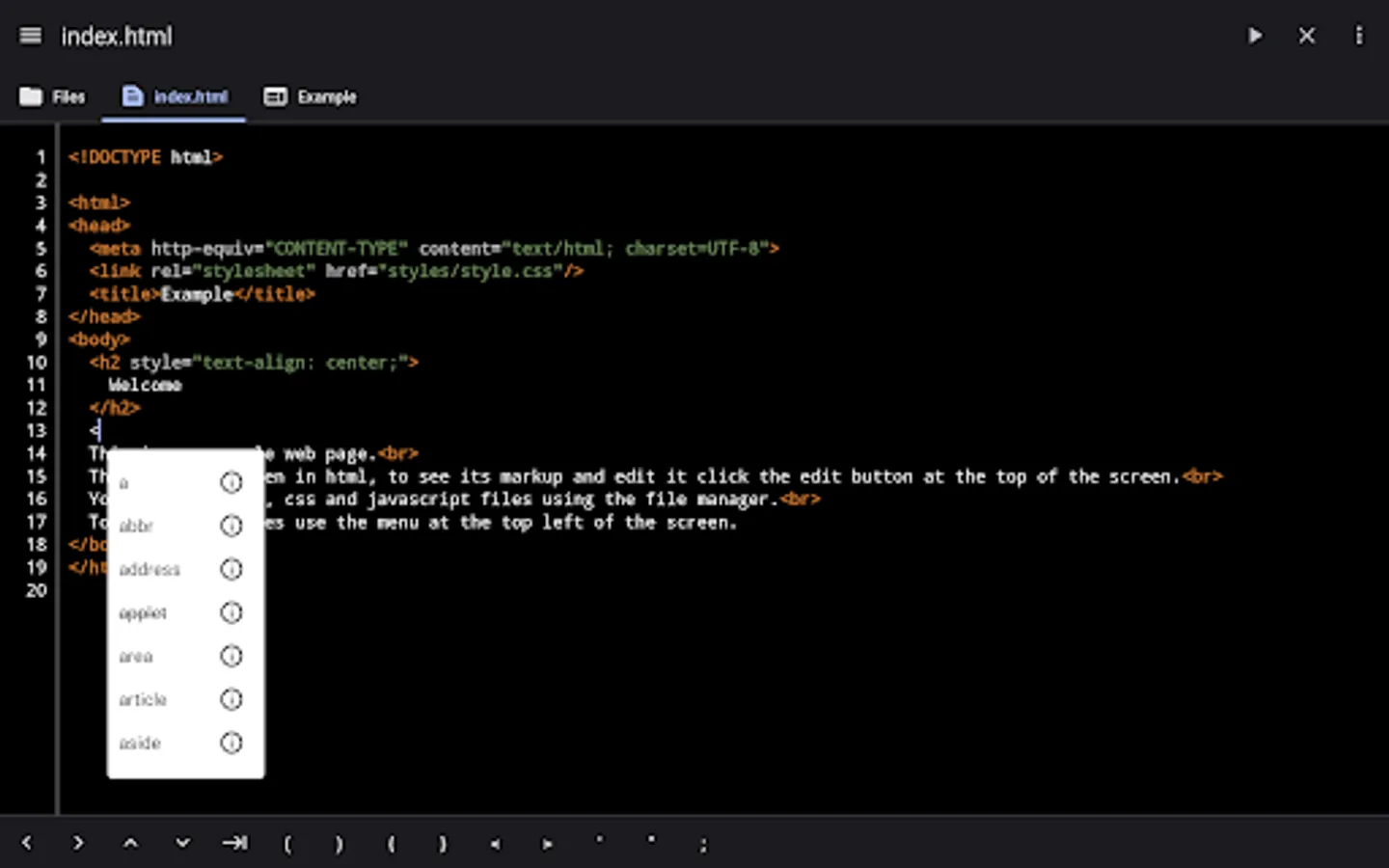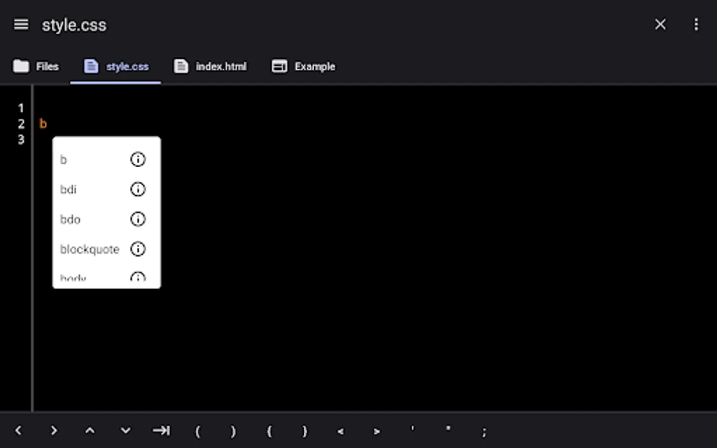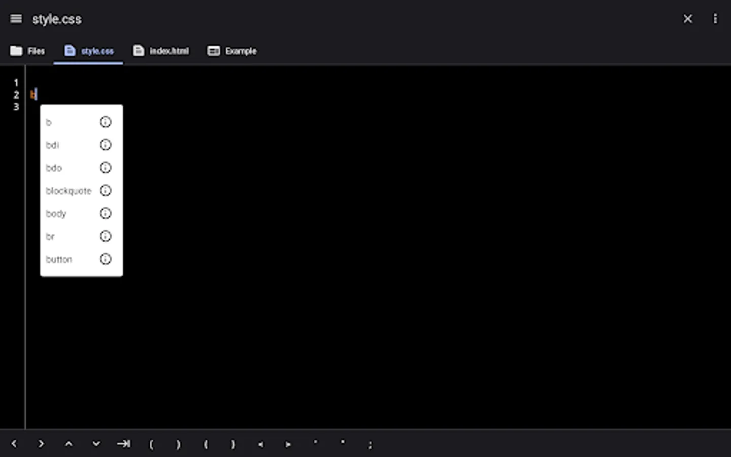 It features a powerful editor with support for auto completion(only for html and css), syntax highlighting and indentation.