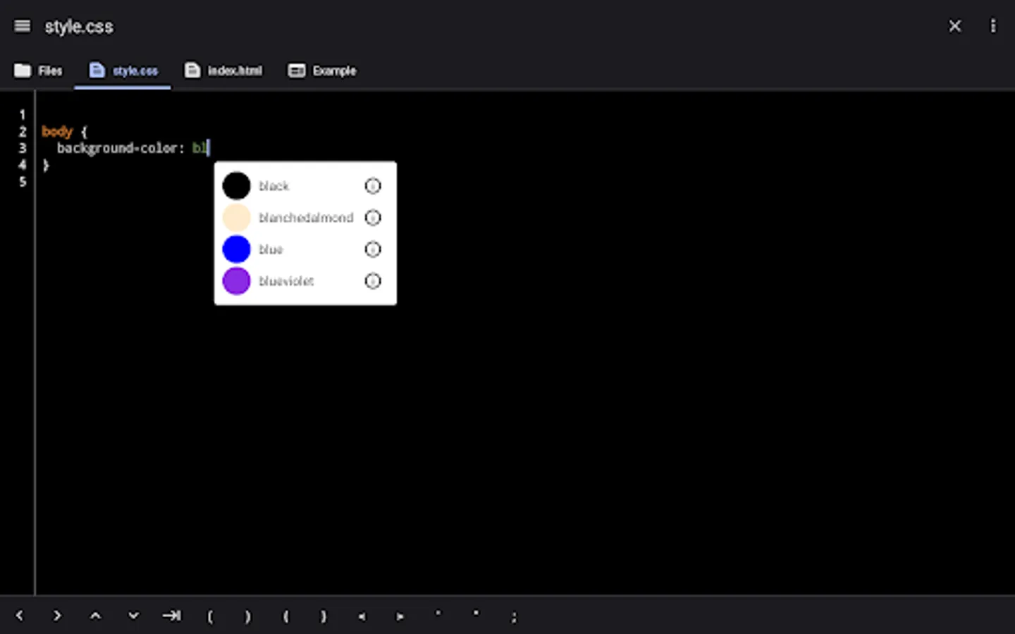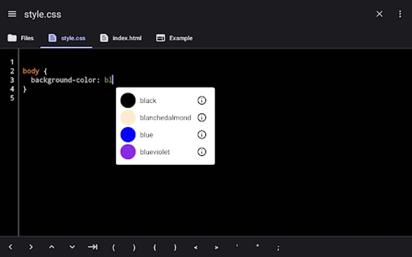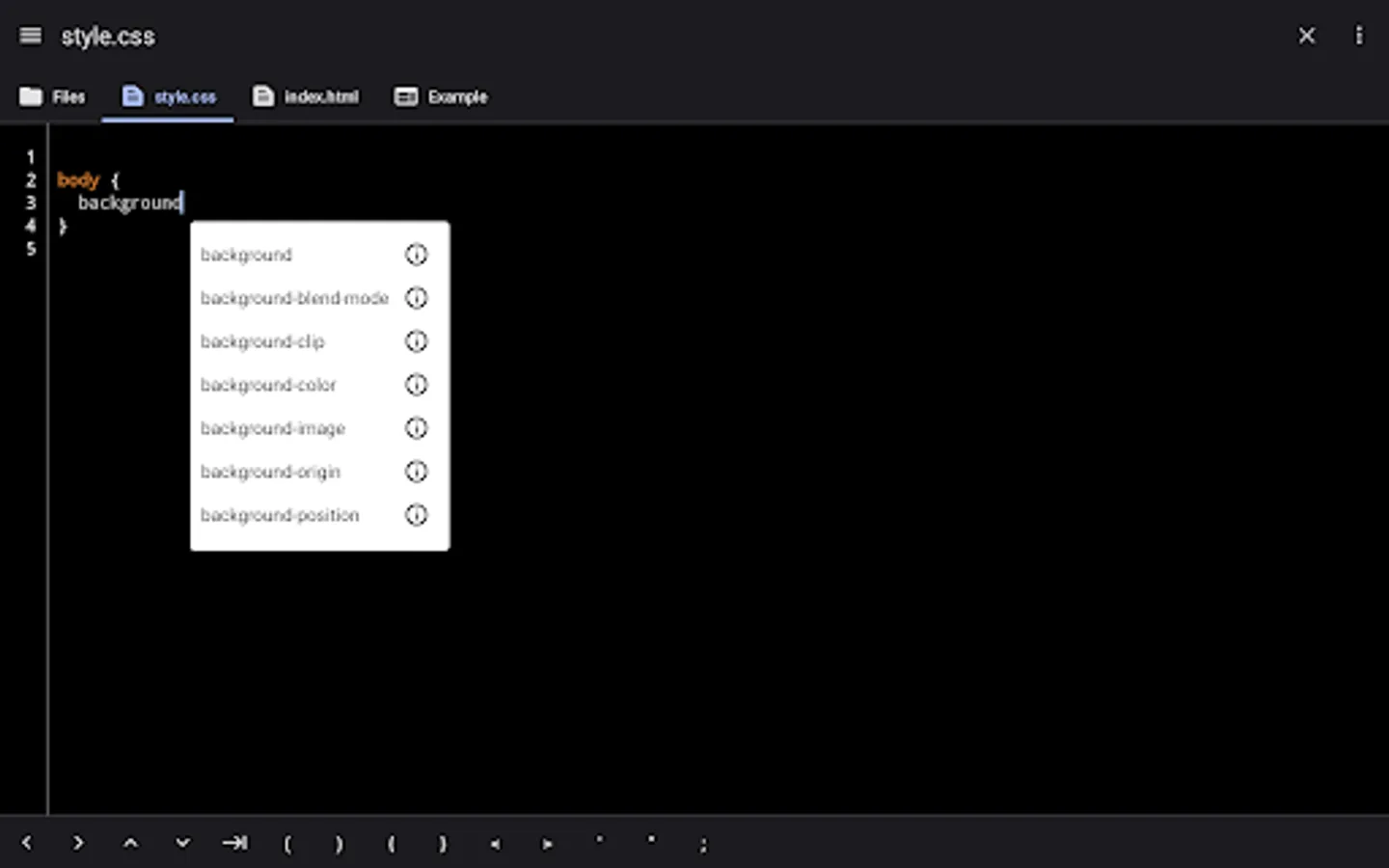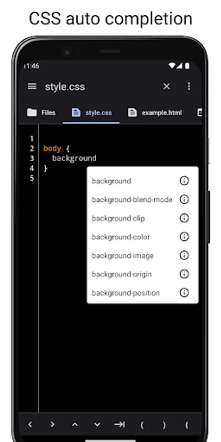 It features a powerful editor with support for auto completion(only for html and css), syntax highlighting and indentation.