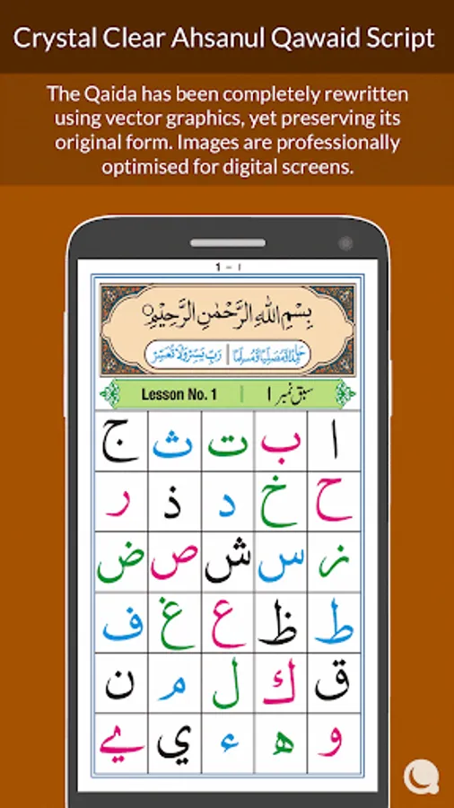 - Crystal Clear Ahsanul Qawaid Script has been completely rewritten using vector graphics, yet preserving its original classical form.