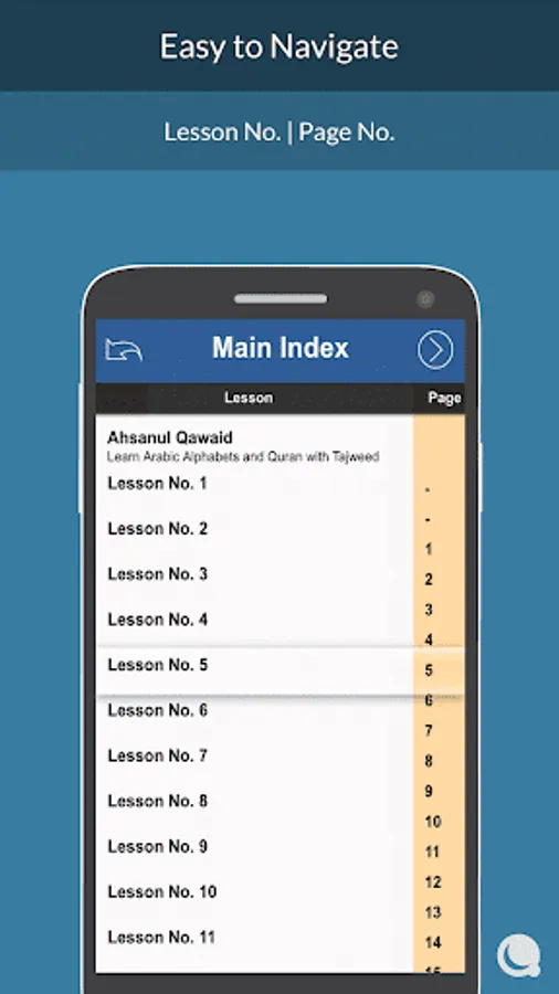 - Main index allow easy navigation to Lesson / Page.