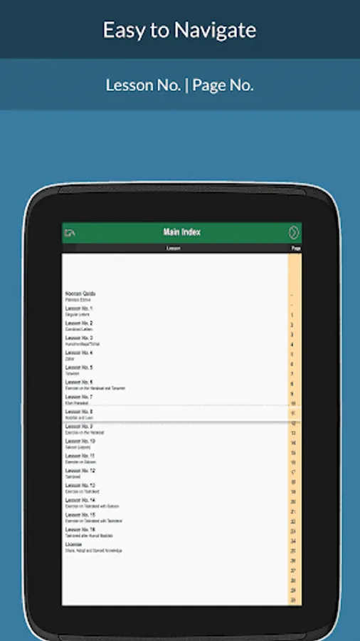 - Main index allow easy navigation to Lesson / Page.