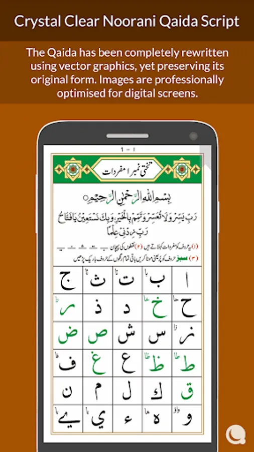 - Crystal Clear Noorani Qaida (Pakistani Edition) Script has been completely rewritten using vector graphics, yet preserving its original classical form.