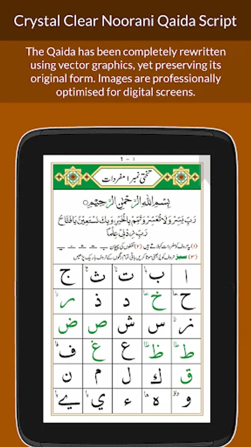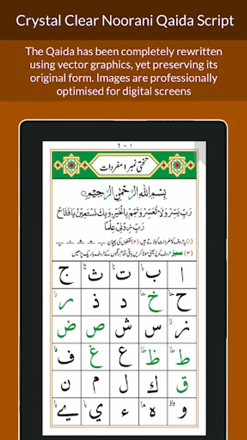 - Color coded Pronunciation (Tajweed) rules are included in the Noorani Qaida.
