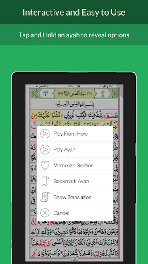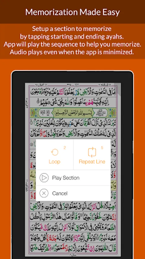 - Memorize sections - Hifz friendly mode to repeat lines or section multiple times