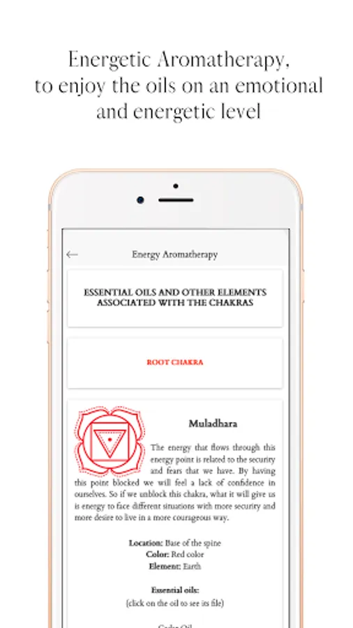 It is the place where you will find all the information related to essential oils, from their general properties, methods of use to synergies with other oils, among others. Whether you are a lover of Aromatherapy or if you are starting in this wonderful world, enter the app to access the exclusive content of oils in a single app.