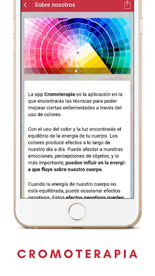 The app Cromoterapia, look after your body and mind, is the definitive application in which you'll find techniques to improve certain diseases through the use of colors.