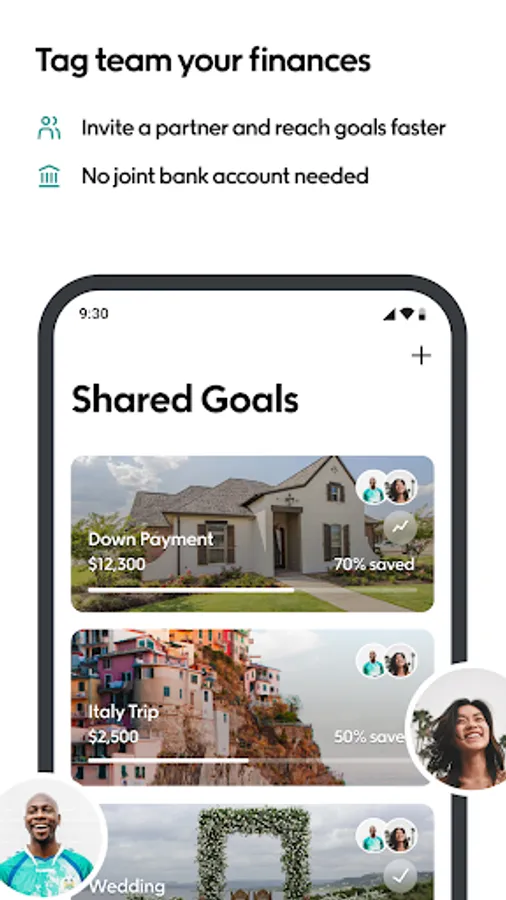 Smarter shared finances: Designed for the way couples manage money together today, Qapital Dream Team™ lets you save toward shared Goals and see one another’s transactions without giving up your individual accounts.