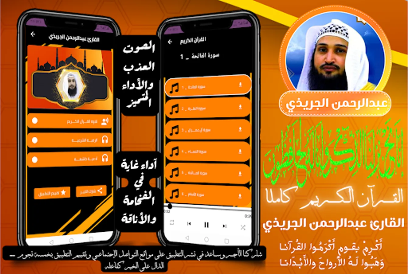 ⬅️ ⬅️ The application of the Noble Qur’an is characterized by the voice of Abdul Rahman Al-Jaridhi by being free, simple and elegant, and it includes recitation of the Holy Qur’an in full voice without internet, exclusive and pure high-quality recordings