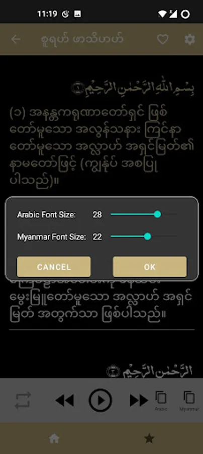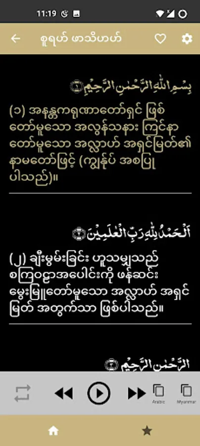 This application contains a Holy Quran in Tajweed with complete Burmese translation which includes verse-by-verse text and audio. You won’t need the internet for using this application. It will work without the internet and it’s a completely offline application.