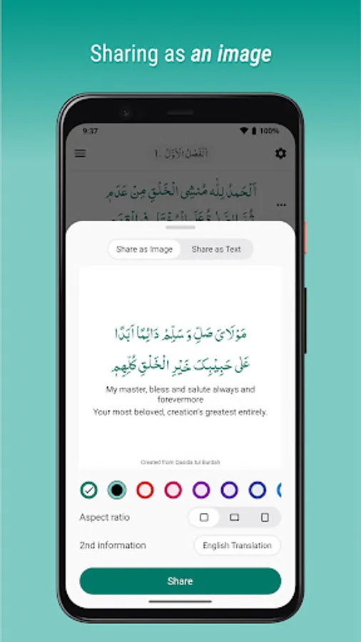 App provides ability to read Qasida tul Burdah with a friendly interface.