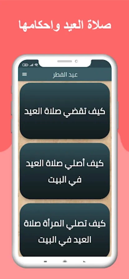 So, the Eid Al-Fitr application, made specifically to answer these questions and more, is the Eid Al-Fitr application. It has a smooth and easy-to-use interface, and the colors have been carefully chosen and made consistent and comfortable for the eye, in the hope that the user will have the best possible experience within the application. We have added the following lists: