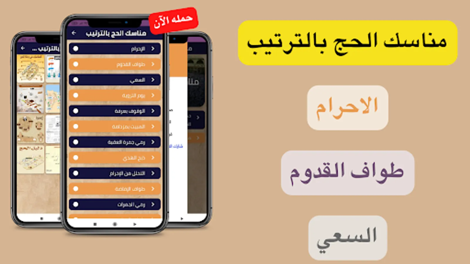 The application of the rituals of Hajj in order is an application that contains the actions that a Muslim performs before, during and at the end of the Hajj, which God showed to his Prophet and his friend Ibrahim, except that they are the rituals of Hajj in order arranged from beginning to end.