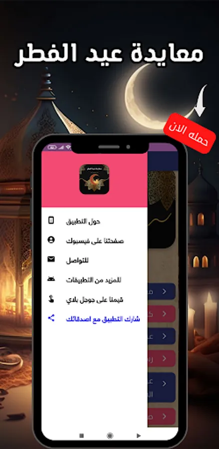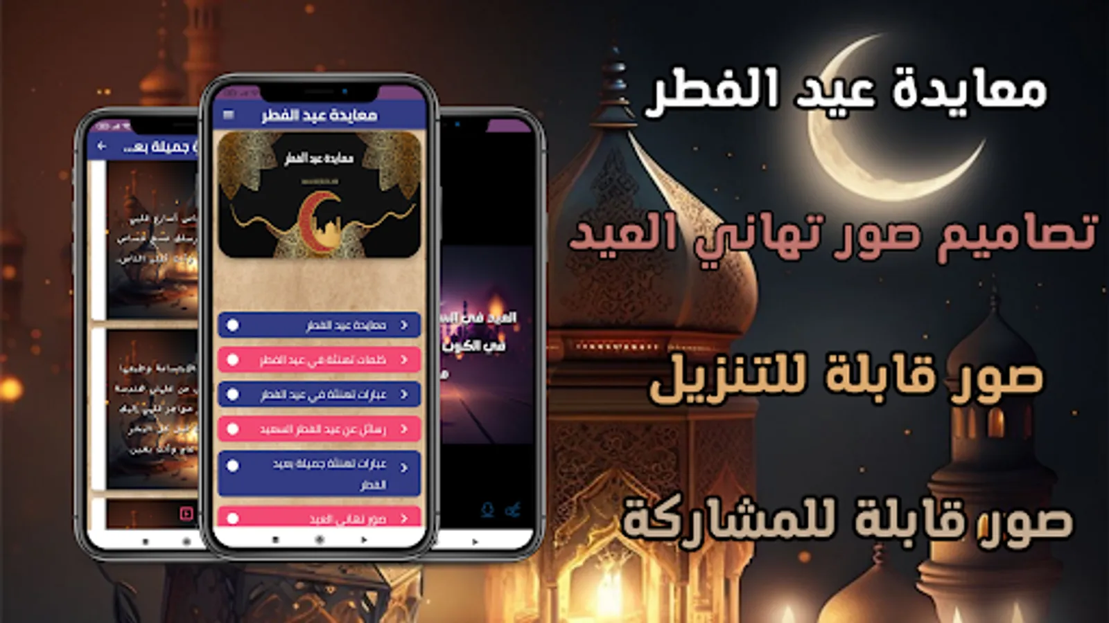 Greeting Eid Al-Fitr Muslims all over the world celebrate Eid Al-Fitr, and it comes after fasting the month of Ramadan, where Muslims celebrate it by exchanging congratulations and blessings to each other and visiting relatives and acquaintances and linking kinship, and in this application we will present a greeting card for the holiday in addition to designing a greeting card for the holiday.