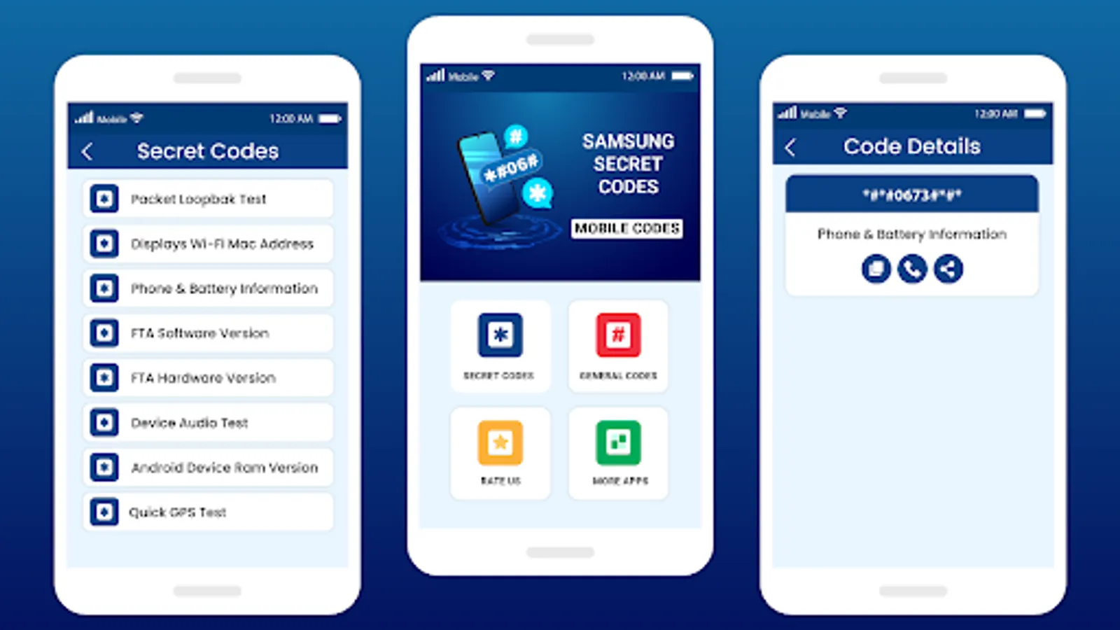 Secret Codes for Samsung app include the android secret code of Samsung. In this app, there is complete details of the hidden codes of the mobiles to change the setting and other function of your mobiles functions which even can’t be changed in your mobiles setting personally