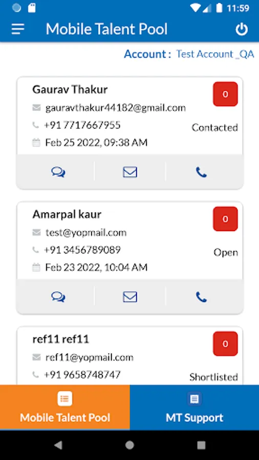 - Recruiter is able to update the status for candidate through app like selected , pending or rejected.