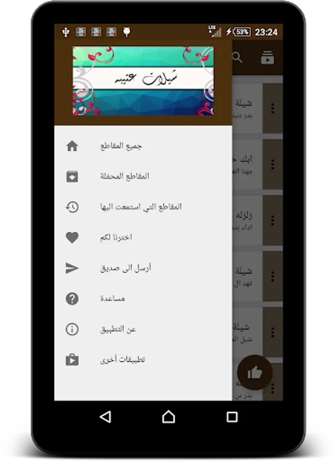 Application chelated Otaiba featuring the coolest and best chelated in Otaiba for months ... the likes of singers: Cub propellants - Muhanna Al-Otaibi - Bader Fahad Al Bnaider -chilat chapter - Badr Alsaivani - the ruler Shaibani ...
